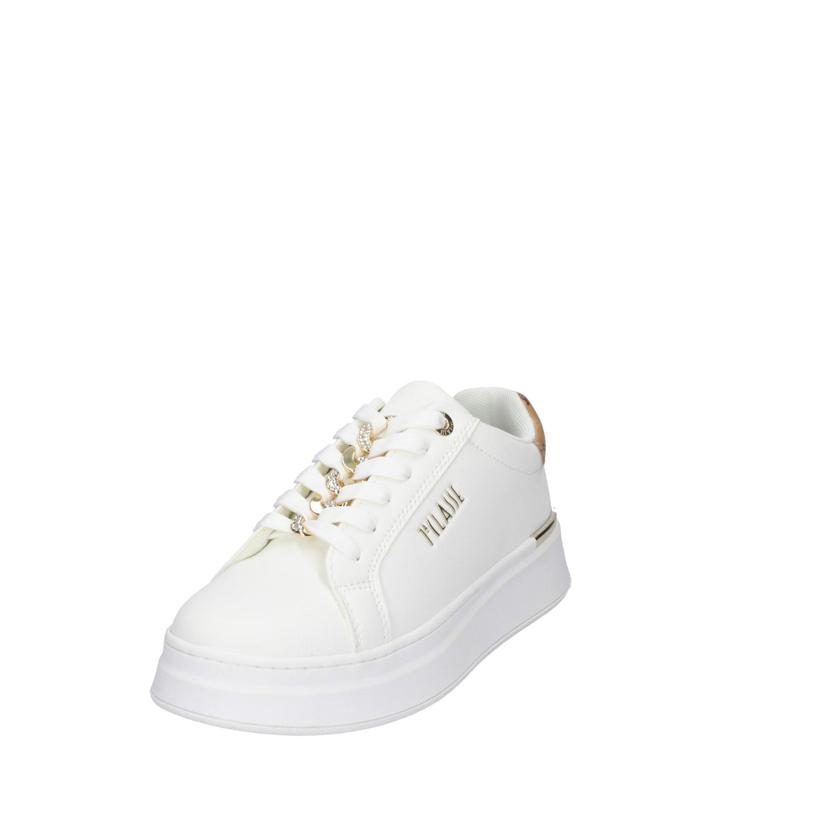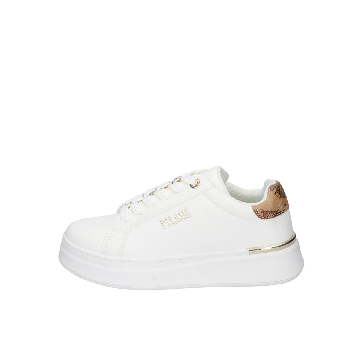 Sneakers da donna che punta su un'estetica pulita e moderna. La tomaia è realizzata interamente in poliuretano (ecopelle), garantendo una calzata leggera e resistente, ideale per un utilizzo quotidiano prolungato. Il design è valorizzato da raffinati inserti in tessuto Geo Classic e dettagli dorati che arricchiscono il profilo della calzatura, conferendole il tipico tocco iconico del brand. Questo modello è completato da una suola a cassetta in gomma con un'altezza di circa 4 cm, che offre un ottimo supporto e una leggera elevazione senza sacrificare la stabilità. La chiusura è affidata a lacci piatti in cotone che permettono una regolazione precisa, rendendo la scarpa versatile e facile da abbinare a look casual o più ricercati.