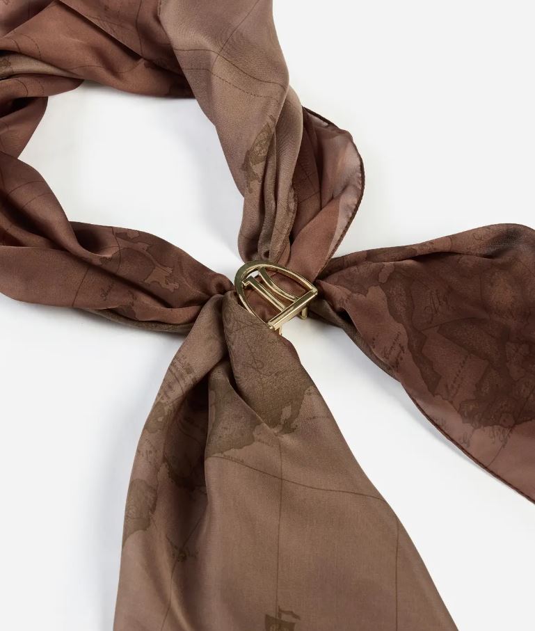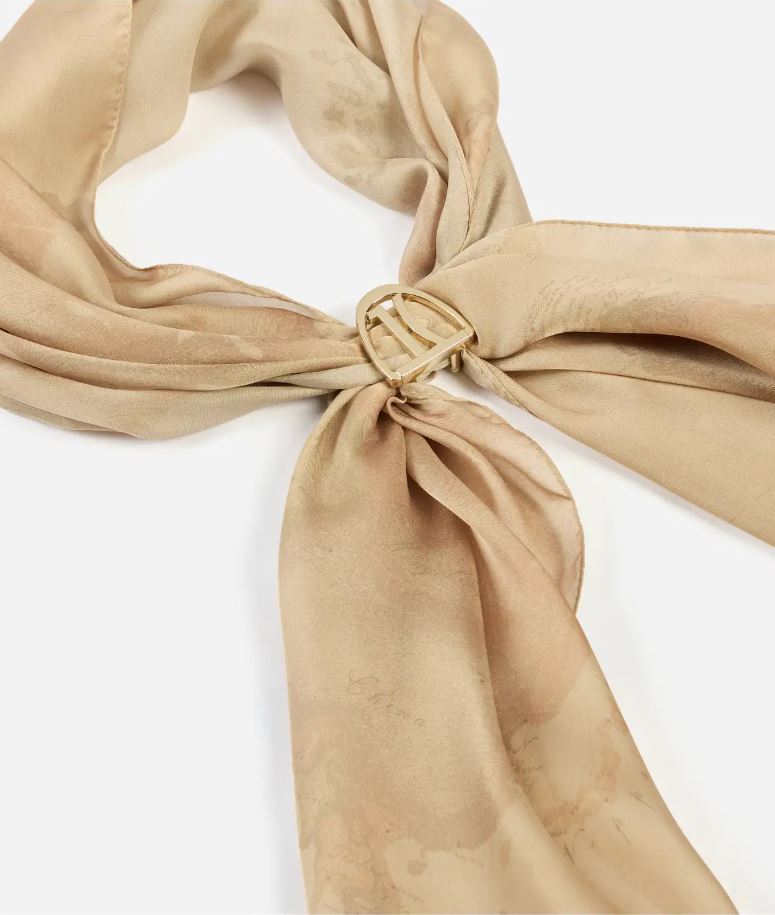 Questa sciarpa reca la mappa del brand in tonalità luminose e raffinate ed è definita dal gioiello scorrevole a forma di staffa con logo 1C, che riassume l'animo della Collezione Autunno/Inverno 2025-26. Un accessorio immancabile, è la chiave per elevare con un gesto qualsiasi outfit, da quelli più eleganti ai look da giorno.