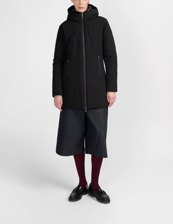 Yorkton Long è realizzata in tessuto resistente all'acqua e trattamento Bionic Finish ECO, con cappuccio e imbottitura in piuma ecologica. Dettaglio zip centrale e tasche waterproof. Perfetto per ripararsi dal freddo e dall'acqua. Vestibilità slim