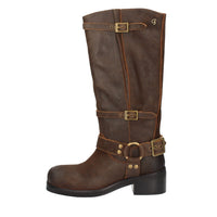 Lo stivale biker alto interamente in pelle fonde echi del mondo equestre americano a quelli di ispirazione rock on the road. Dalla suola compatta e ben strutturata si erge un gambale elegante, impreziosito da raffinate fibbie quadrate e borchiette che lo rendono molto grintoso. Da mini dress in pelle o denim a jeans skinny con maxi coat, sa essere molto versatile, soprattutto per il tempo libero. Un accessorio per l'inverno capace di rendere qualsiasi look stiloso e dal carattere unico e inimitabile.