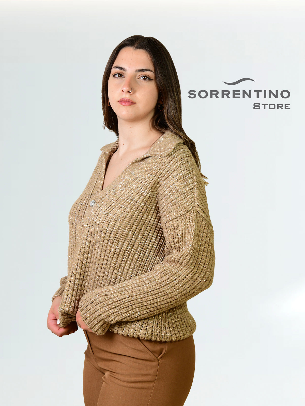 Maglia modello polo con bottone gioiello - Maglia M/L Almerigo