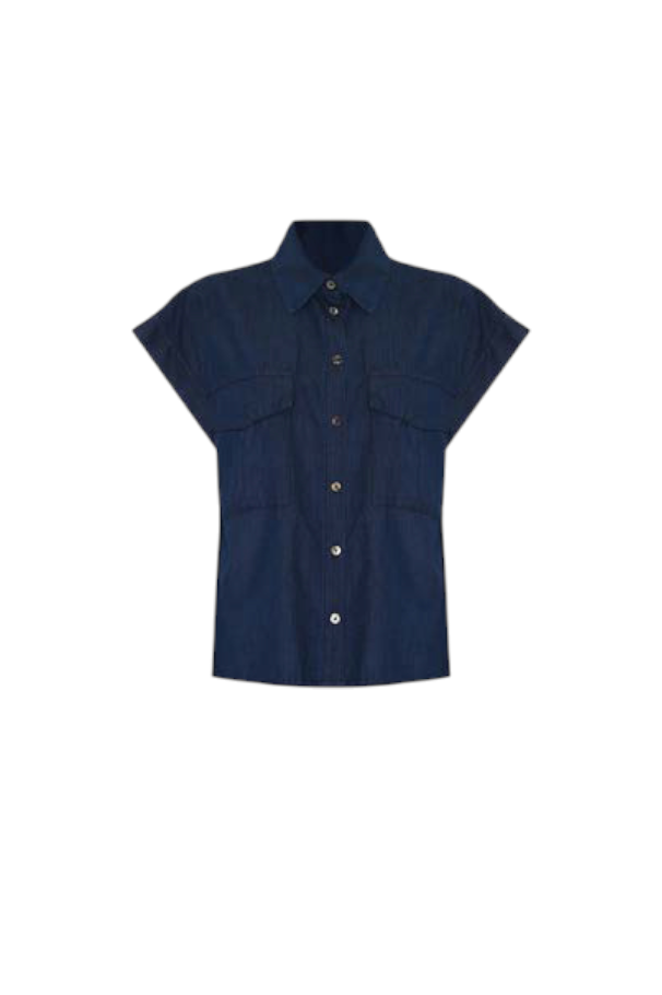Modello a maniche corte con colletto classico e due tasche frontali con patta