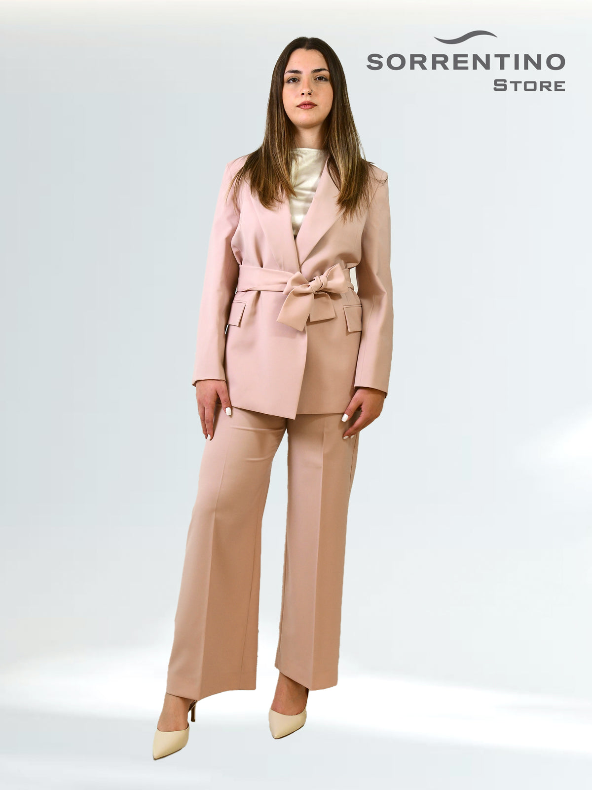 Giacca in lana con cintura - Cipria