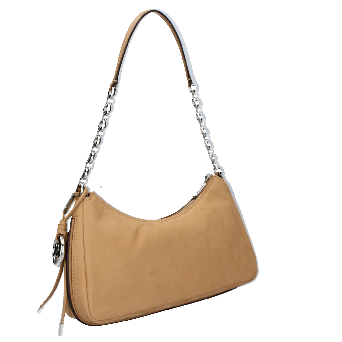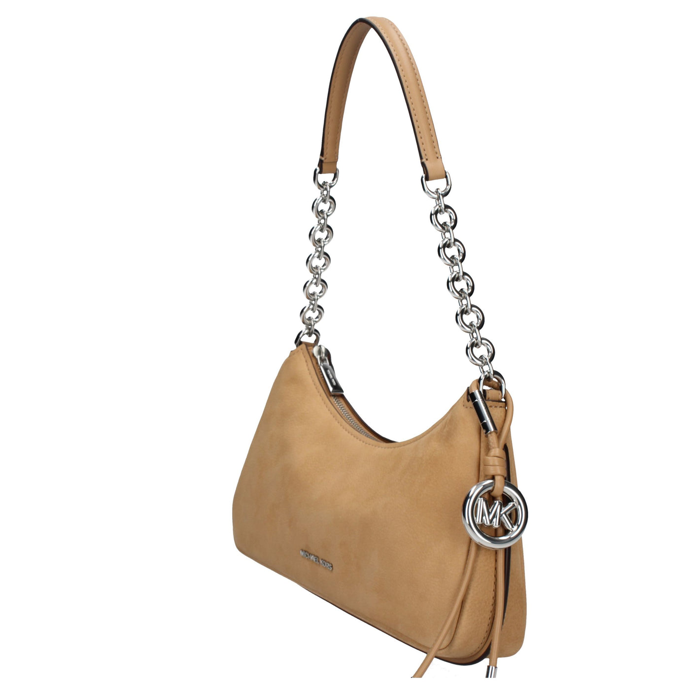 Corredata da una tracolla a maglie dorate, la nostra nuovissima pochette Nolita diventerà sicuramente una protagonista del tuo guardaroba. Realizzata in nabuk, presenta un ciondolo MK Pop rimovibile per un tocco di stile extra. Sarà la compagna delle tue serate.