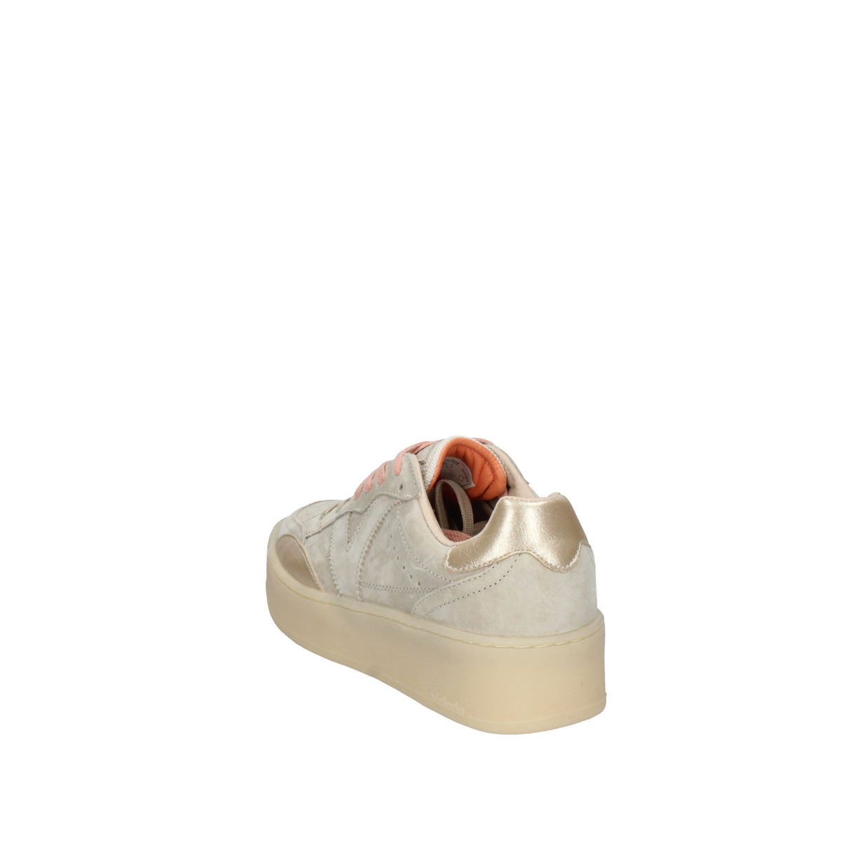 Sneakers con plateau da donna in camoscio con inserti metallizzati tono su tono. Chiusura con lacci bicolore: alcuni tono su tono e altri rosa. Punta traforata per favorire la traspirazione. Suola in TPR traslucido color caramello.